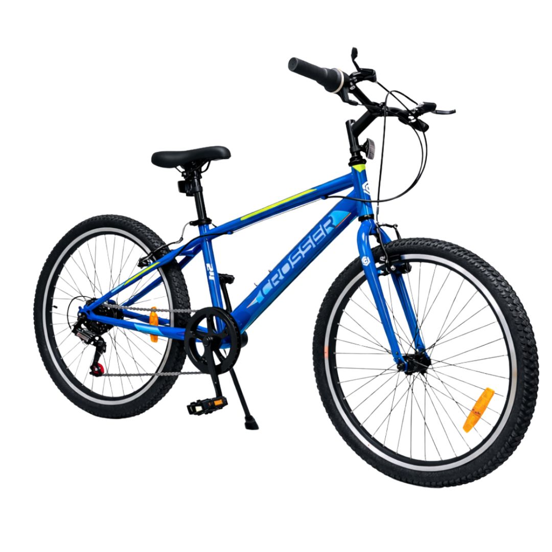 Dečiji bicikl od 24“ u kombinaciji plavih boja savršen je izbor za dečake uzrasta od 10 do 12 godina odnosno visine deteta od 130 – 155cm. Sportski dizajn sa čistim linijama i dinamičnim detaljima pruža izgled pravog „odraslog“ bicikla, dok geometrija rama omogućava maksimalnu stabilnost u svakoj avanturi.